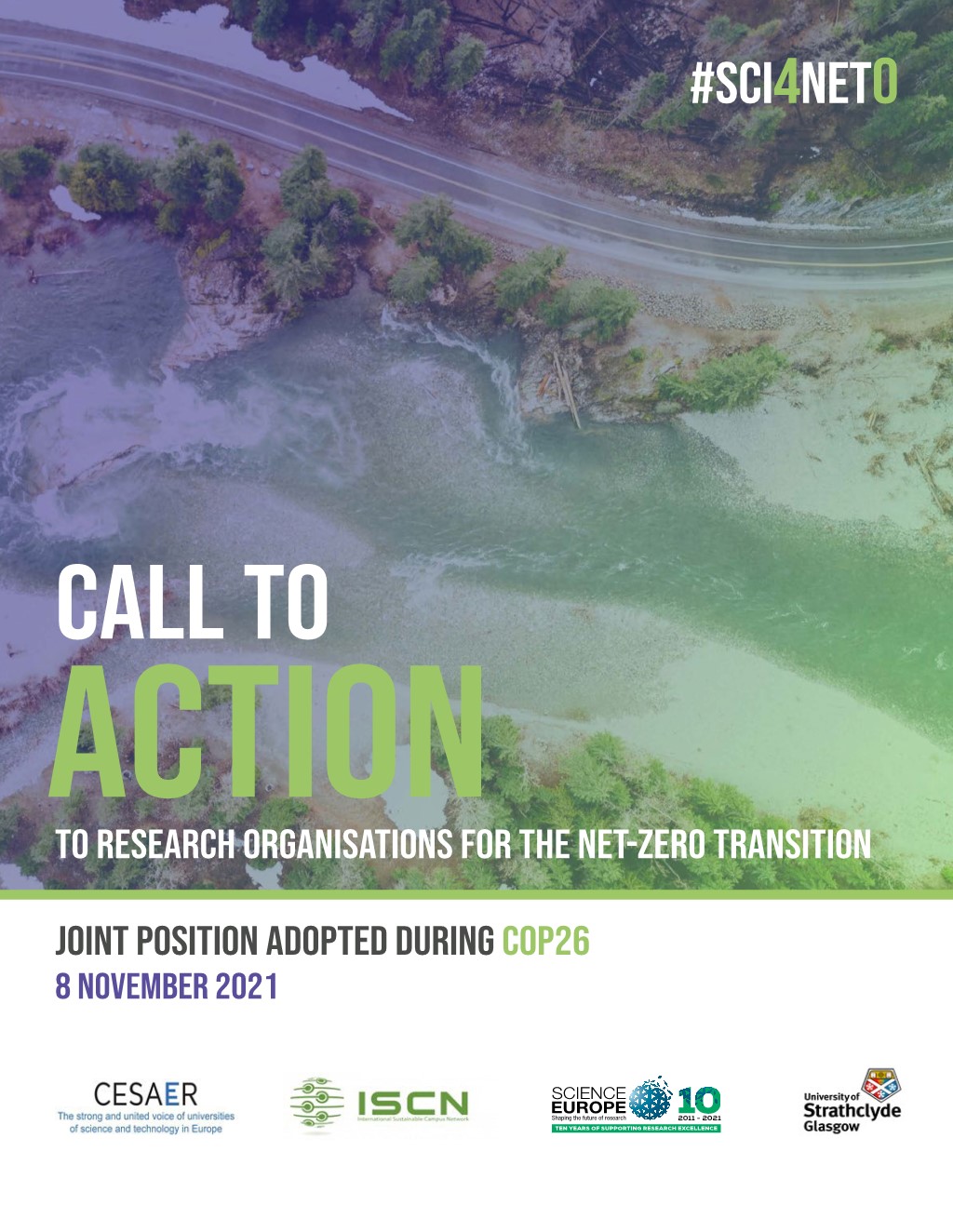 On 8 November 2021, at the 26th UN Climate Change Conference (COP26), CESAER, the International Sustainable Campus Network (ISCN), Science Europe and the University of Strathclyde organised a ‘Science for Net-Zero transition’ Symposium and launched a joint call for collective global action to tackle climate change by reducing and transitioning to Net-Zero emissions.