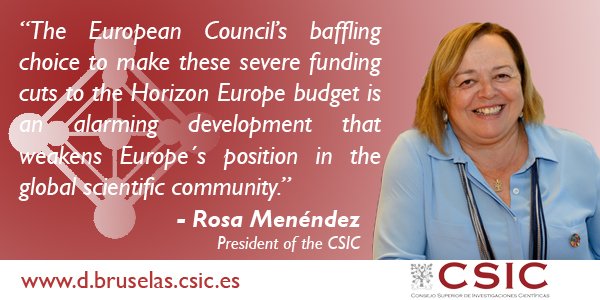 Lidia Borrell-Damián, Science Europe Secretary General, quoted in Times Higher Education expressing disappointment over the proposed Horizon Europe budget.