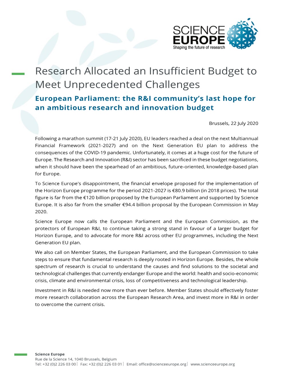 Together with LERU, EUA, EARTO, and the Vice-Presidents of the European Research Council (ERC), we join MEP Christian Ehler from the EEP Group in his call to match the Green & Digital goals with a budget fit for this age.
