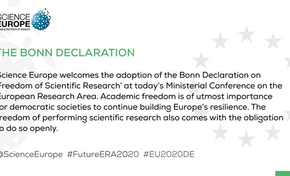 Science Europe welcomes the adoption of the Bonn Declaration on ‘Freedom of Scientific Research’ at today’s Ministerial Conference on the European Research Area in Bonn. Academic freedom is of utmost importance for democratic societies to continue building Europe’s resilience.