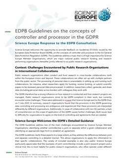 In its response to the European Data Protection Board (EDPB) Science Europe welcomes the detailed guidance on identifying whether controllership is joint or separate within a given collaboration and identifying an appropriate legal form to establish an agreement. However further clarification through the EDPB Guidelines would be helpful for public research organisations.