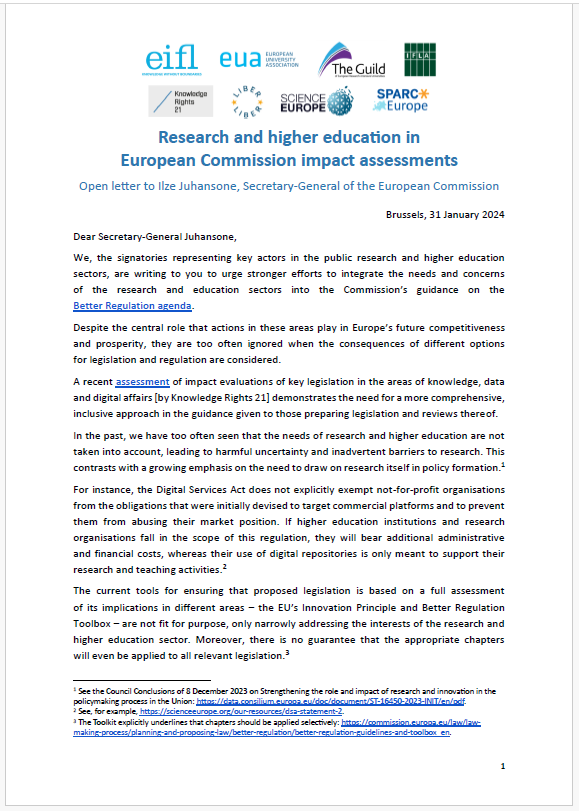 Science Europe, along with 7 other Organisations released an open letter today addressed to Ilze Juhansone, Secretary-General of the European Commission, and colleagues demanding the Commission prioritise research and education in its ex-ante impact assessment process.